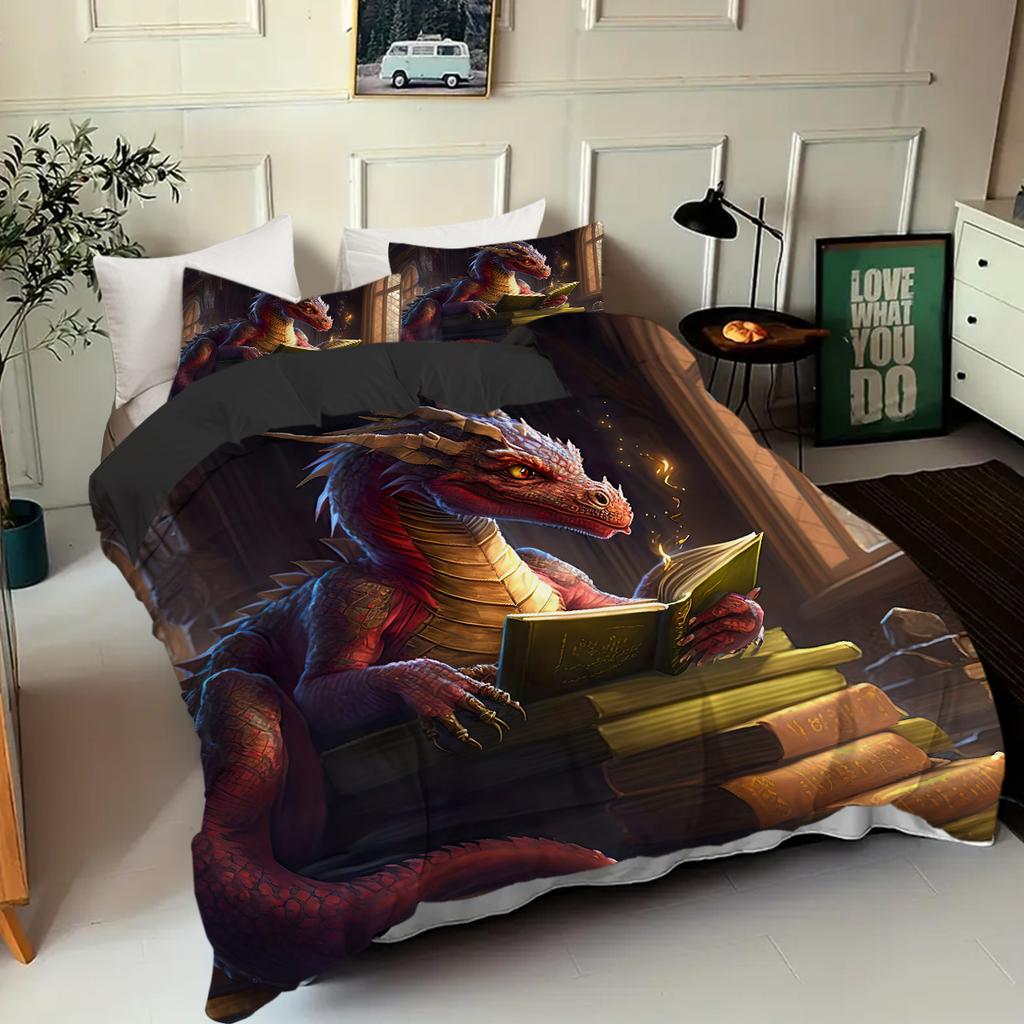 Mysteriöses Drachenbücher Muster 3D-gedruckter Bettbezug Weiches Bequemes Bettwäsche-Set Wildtier-Stil Bettdeckenbezug Set Kissenbezüge