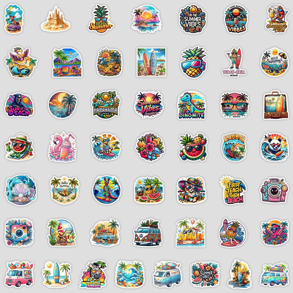 50 Colorful Summer Graffiti Stickers Personalized Vacation Style Beach DIY Water Cup Mobile Phone Waterproof Decorative Stickers