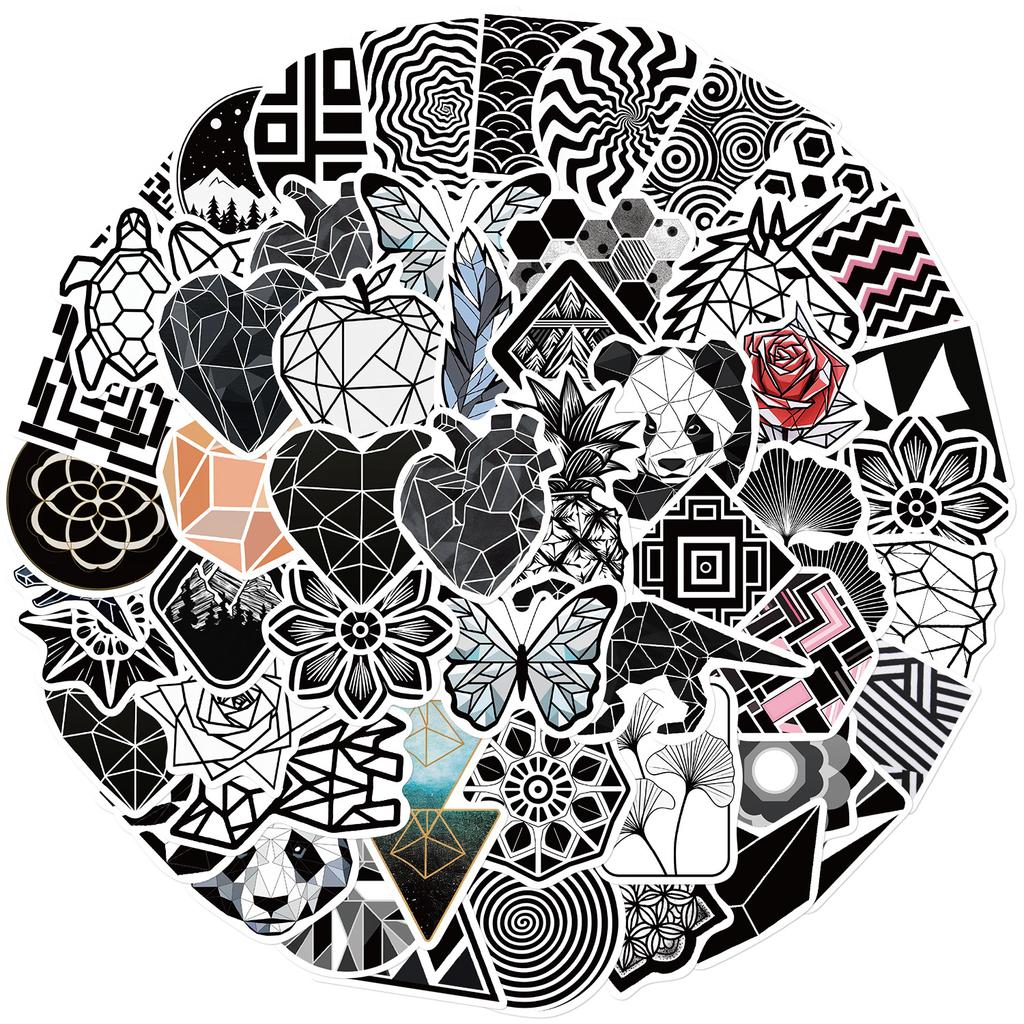 52 Black and White Geometric Pattern Graffiti Stickers Guitar Notebook Suitcase DIY Waterproof Stickers