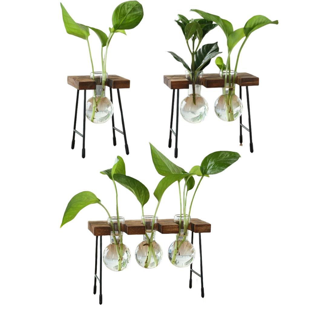 Glasblumenvase Hydroponische Blumenvase Pflanztopf Holzrahmen Heimdeko Blumentopf Knospenvase Modern für Bürotisch