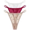 3PCS Lace Sheer Thong Panties Women's Sexy Low Waist Seamless Lingerie Heart See Through Mesh Underpants Intimates Lingerie
