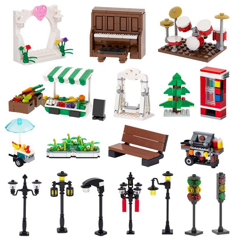 MOC City Serie Hochzeitsbogen Straßenlaterne Schlagzeug Schaukelstuhl Park Straßenansicht Bausteine Spielzeug Für Kinder Kreative Geschenke