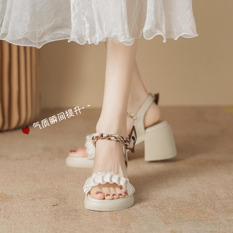 Sandalen Damen Sommer neu Temperament dicksohlige wasserdichte Tisch High Heel Ein-Wort offene Sandalen Damen