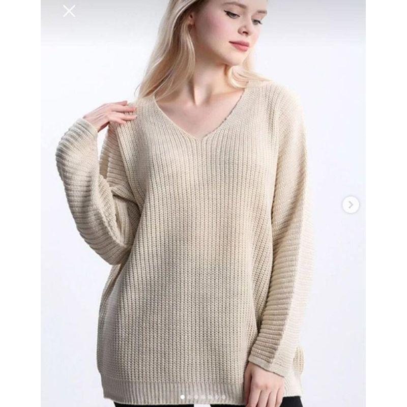 Sunshine Home Autumn and Winter New Foreign Trade European and American Plus size women clothing V-neck Loose Long sleeve Sweater Lazy Fan Knit