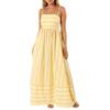 Sommerkleid für Damen, gestreifter Druck, ärmellos, rückenfrei, Spaghettiträger, ausgehöhlt, A-Linie, großer Saum, knöchellang, Urlaub, Strand, Maxikleid