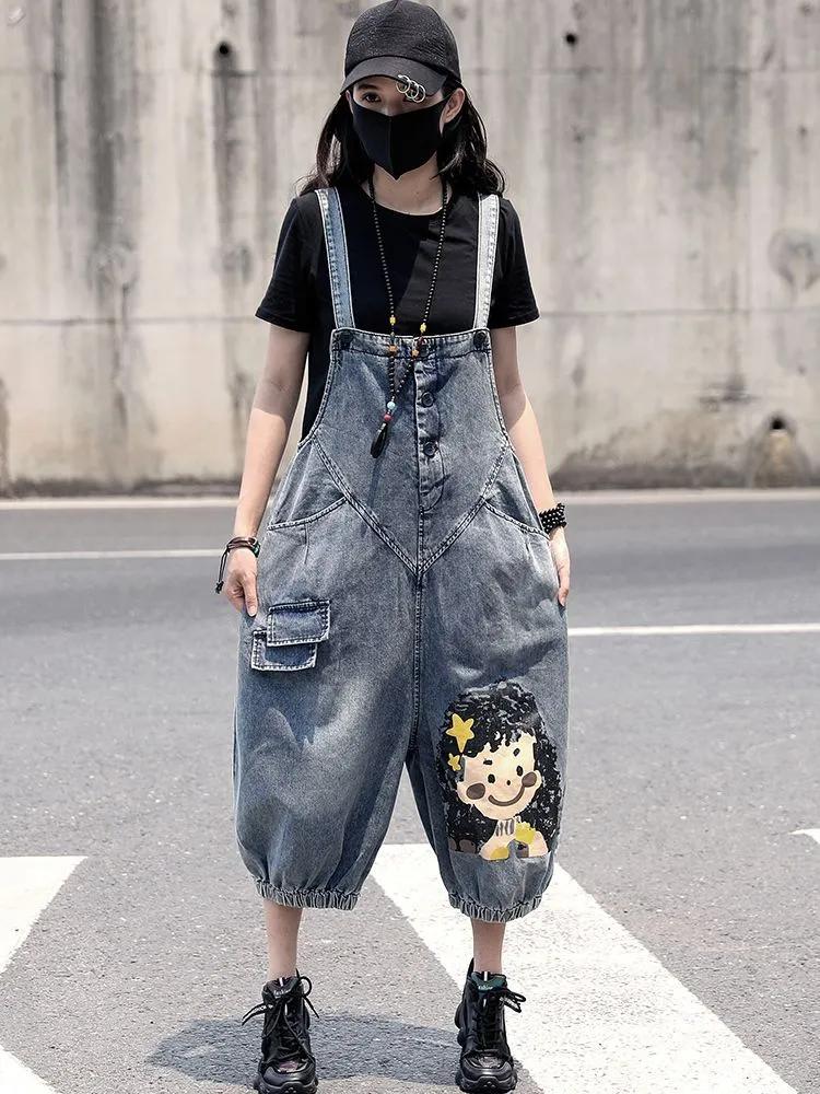 Personalisierte Street Washed Harlan Denim Latzhose Sommer Dünn Mode Locker Gerades Bein Jumpsuit