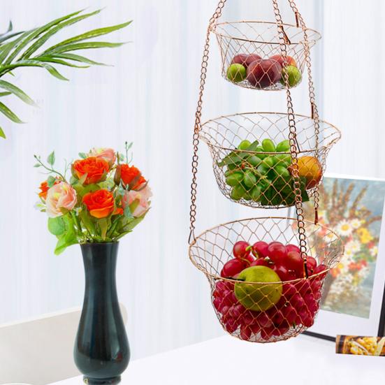 Effiziente Organisation: Mit seinem dreistufigen Design optimiert dieser multifunktionale Hängekorb die Aufbewahrung und hält Obst, Gemüse, Toilettenartikel oder Haushaltsgegenstände ordentlich angeordnet und leicht zugänglich.