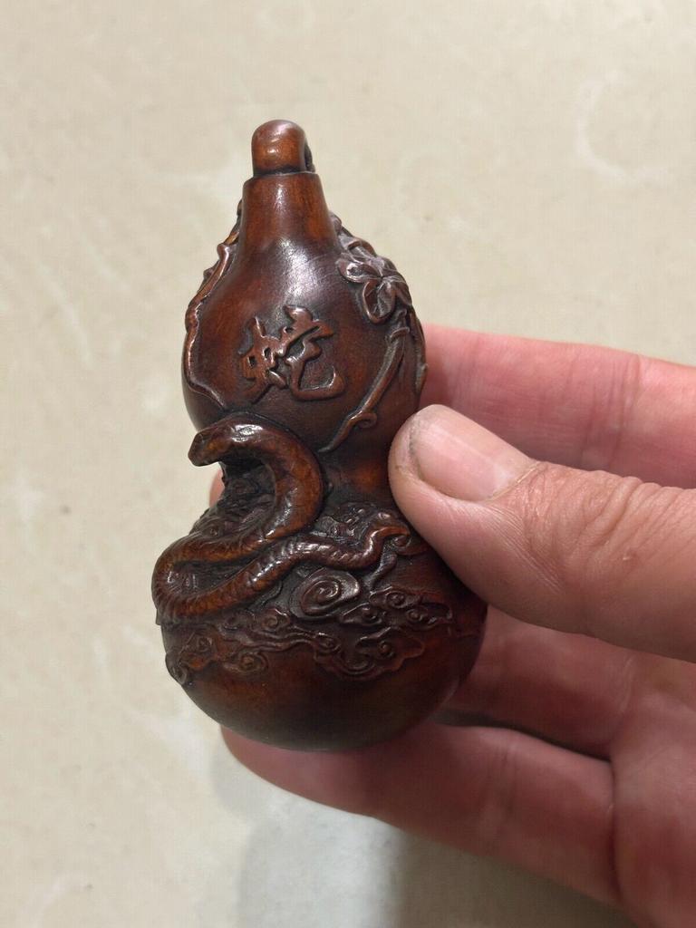 Chinese Boxwood Hand Carved Viper Small Dragon Statue Gourd Figurines Home Decor