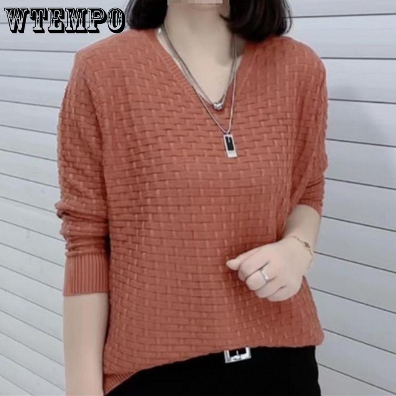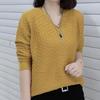 Herbst/Winter Damen Langarm V-Ausschnitt Pullover Einfarbig Locker Gestrickter Basic-Pullover