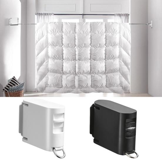 Maximieren Sie Ihre Trockenkapazität mit unserer einziehbaren Wäscheleine! Diese strapazierfähige Wäscheleine lässt sich bis zu 13,9 Fuß ausziehen und bietet ausreichend Platz für große Kleidungsstücke.. Mit einer Tragkraft von 55 Pfund ist es perfekt zum gleichzeitigen Trocknen mehrerer nasser Gegenstände..
