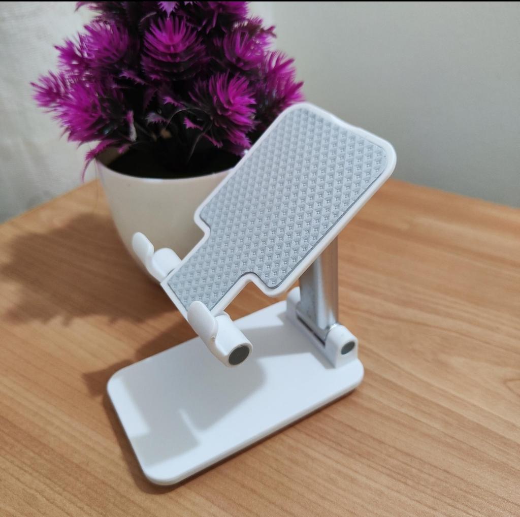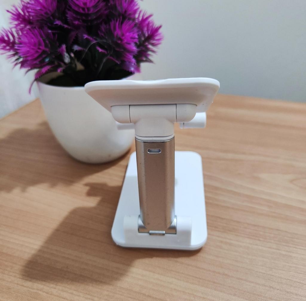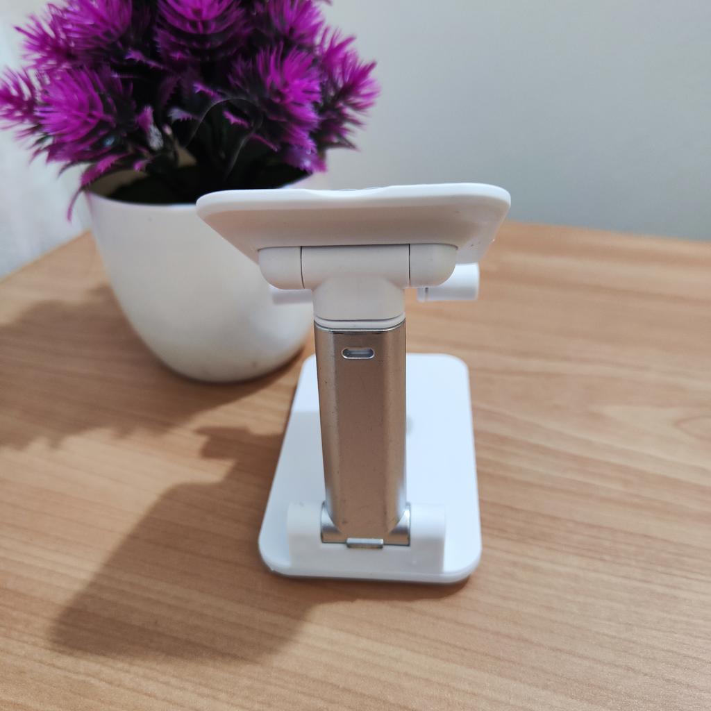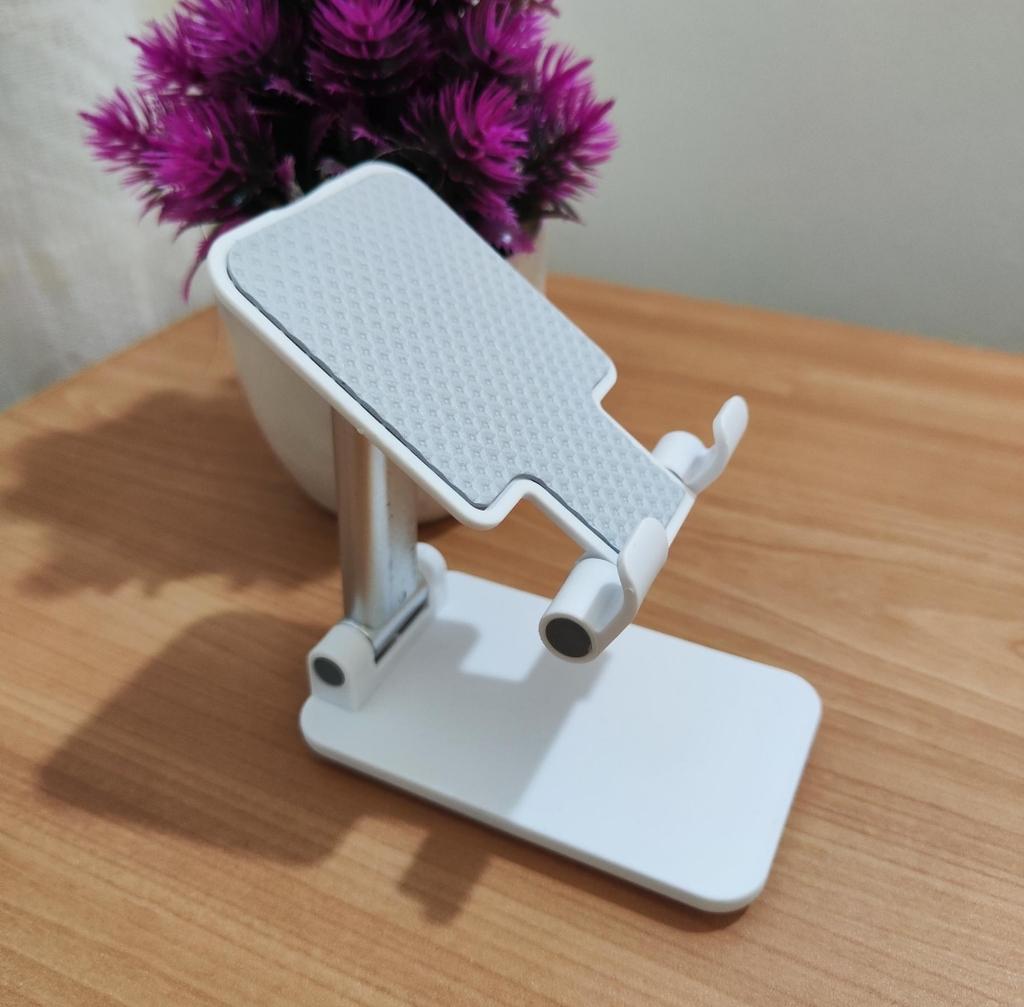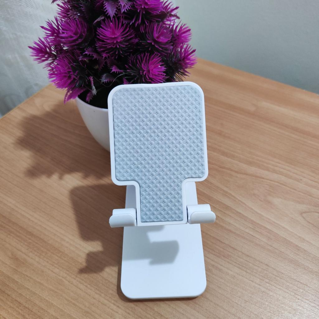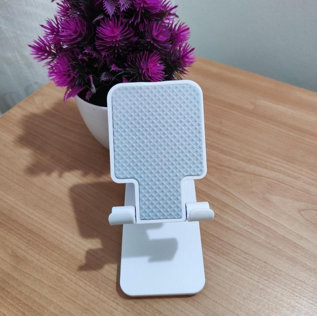 Universeller Tischständer für Telefon und Tablet – bequem, stabil und praktisch Dieser Tischständer rettet mich einfach! Er passt für alle meine Telefone und Tablets, einschließlich iPhone und iPad, und das faltbare Design spart Platz, wenn er nicht benutzt wird. Das Silikonpad funktioniert wirklich und verhindert Rutschen und Kratzer, sodass man beruhigt sein kann, dass das Gerät geschützt ist.. Was ich am meisten liebe, ist, wie stabil er ist – er befreit wirklich die Hände und ermöglicht es, Filme zu schauen, E-Mails zu lesen oder sogar Videos in absolutem Komfort aufzunehmen. Die erhöhte Höhe passt genau zum Nacken und verhindert Schmerzen, was ein riesiger Bonus für Arbeit und Erholung ist.. Sehr einfach zu bedienen und einzurichten, und sehr langlebig. Sehr empfehlenswert für alle, die viel Zeit mit ihrem Telefon oder Tablet verbringen!