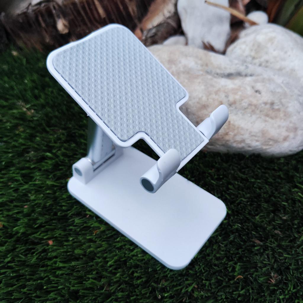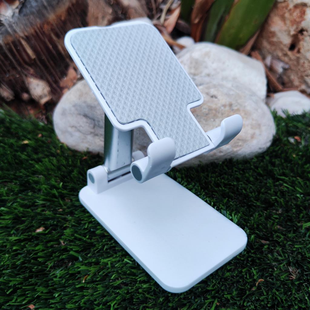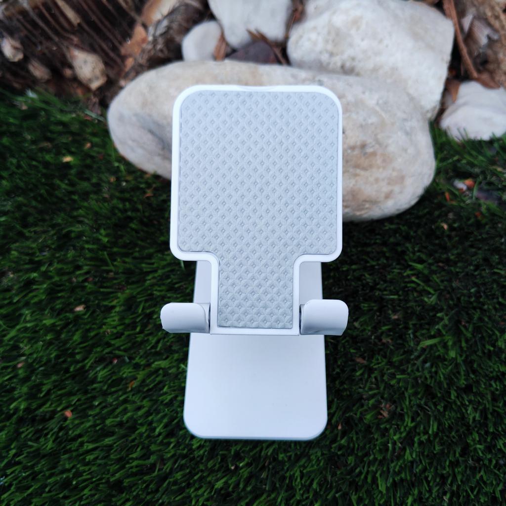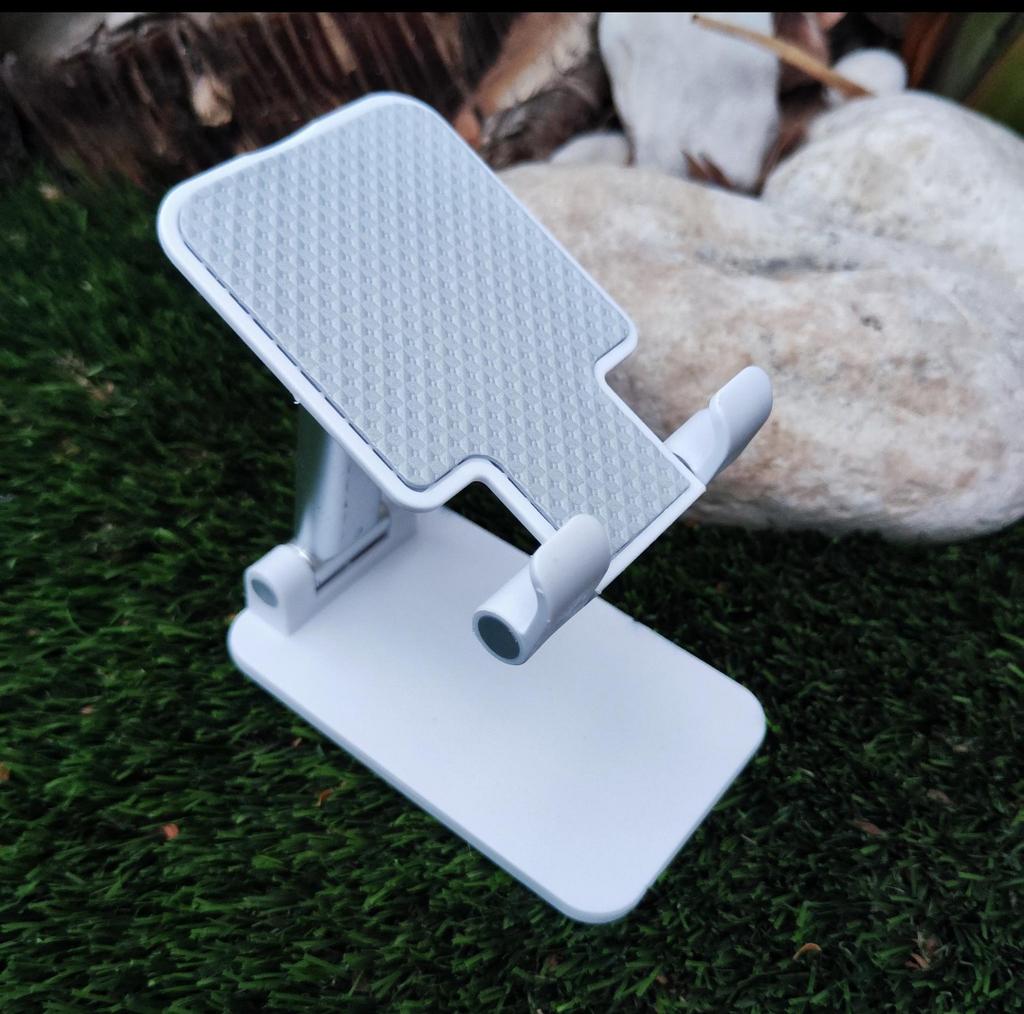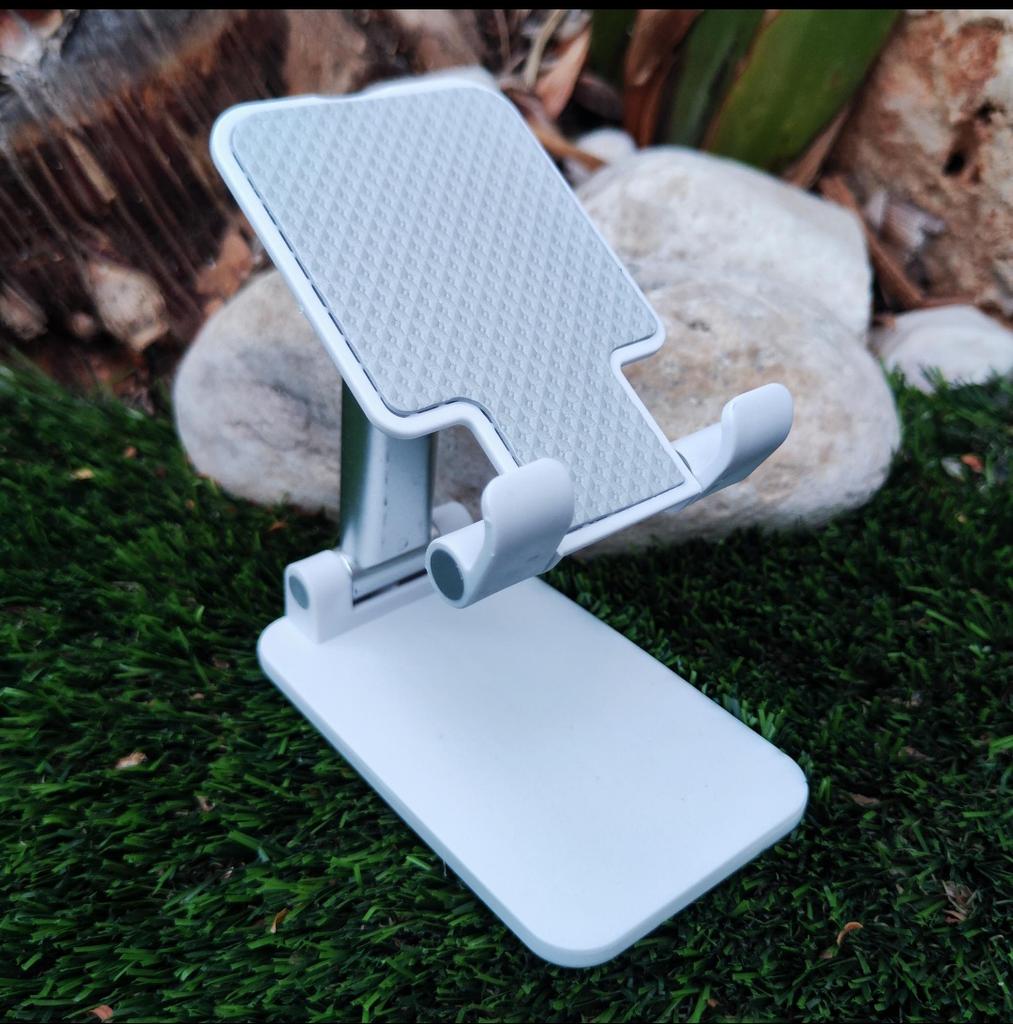 Winkel- und Höhenverstellung: Verfügt über ein Doppelscharniersystem, das sowohl die Neigung als auch die Höhe des Geräts reguliert und sich perfekt an Ihre Sehhöhe anpasst. Rutschfestes Design: Die Stützbasis des Telefons hat eine strukturierte Oberfläche, die verhindert, dass das Gerät während der Benutzung verrutscht.. Tragbarkeit: Seine Struktur ist faltbar, was es erleichtert, ihn in jeder Schublade zu verstauen oder in einer Tasche zu transportieren, wenn er nicht in Gebrauch ist.