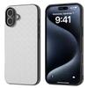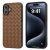 For iPhone 16 Plus Case Woven Texture Leather+PC+TPU Hybrid Phone Cover