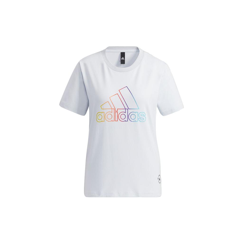 Adidas W Bos Tee Sporty Print Logo Crew Neck Short Sleeve T-Shirt Women Tops Light-Blue HA3634