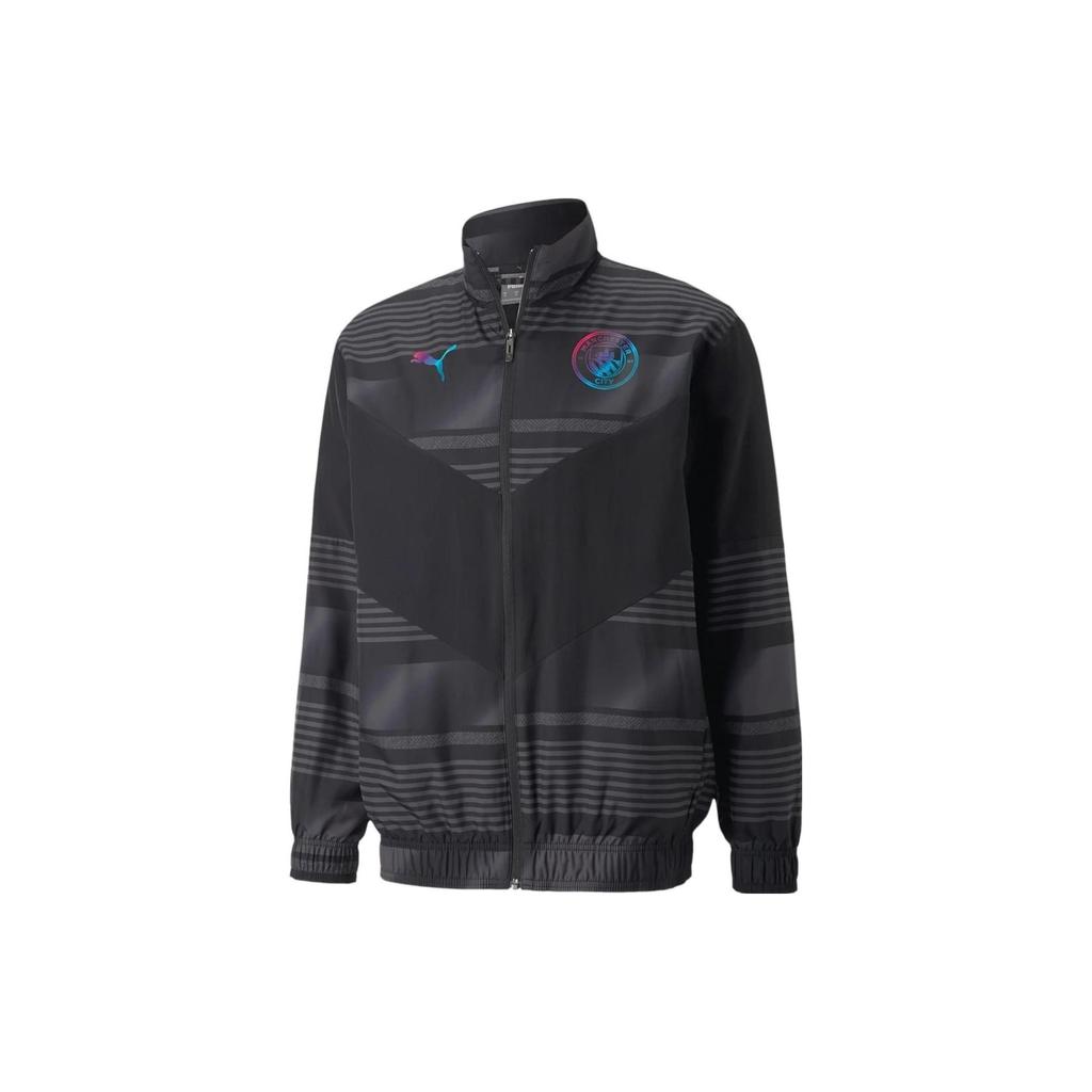 Puma Mcfc Prematch Jacket Logo Geometric Print Stand Collar Casual Zip Woven Jacket Men Jacket Black 765180-03