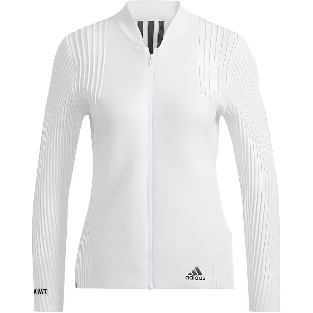 Adidas Einfarbige Baseballkragen-Jacke mit Reißverschluss und langen Ärmeln für Damen, Jacke Weiß HB3580