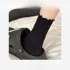 Schwarze Socken mit Ohrkante für Damen, Sommerliche Mid-Calf-Socken mit Spitze, Nahtlos, Locker, Frotteesocken, Vielseitige Baumwollsocken für Studentinnen