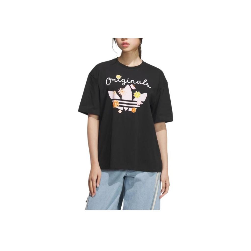 Adidas Originale Bequemes Weiches Lässiges Vielseitiges Kurzarm Atmungsaktives Überschnitt-T-Shirt Damen Tops Schwarz KB8959