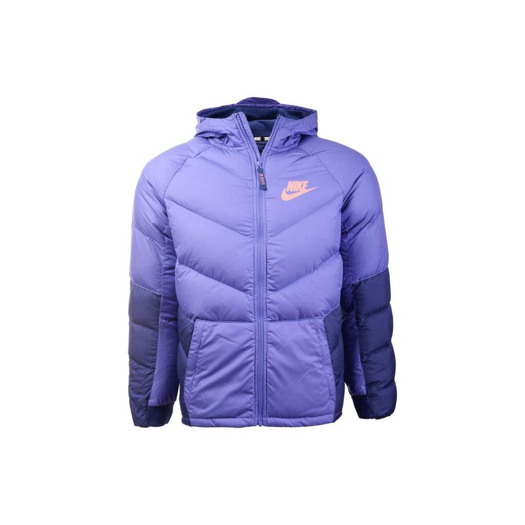 Nike Patchwork-Design Markenlogo Bedruckte Daunenjacke mit Kapuze Kinderjacken Lila 939557-554