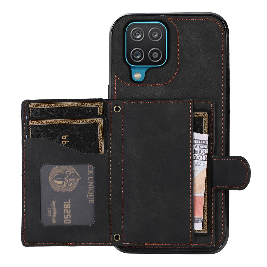 For Samsung Galaxy A12 Case Imprinted Phone Cover Card Holder TPU+PU Leather Shell