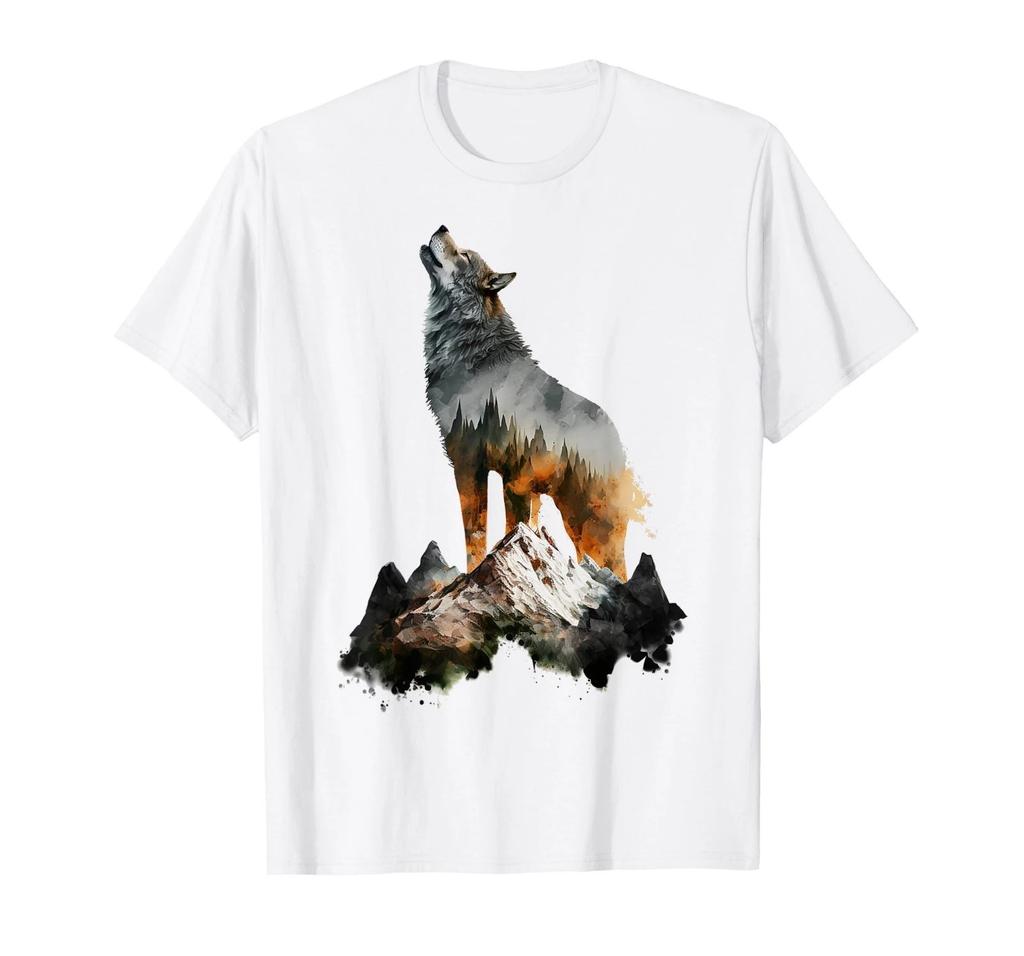 Wolf Howls Mountains Nature Animal Art Animal Lovers Wolf T-Shirt