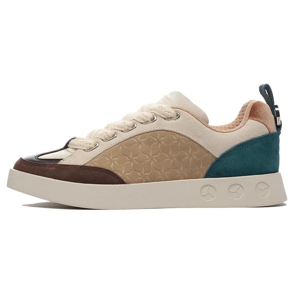 Li-Ning 1990 Wind Chime Retro Color Block Non-Slip Wear-Resistant Low-Top Skate Shoes Men Sneakers Beige Green ALHS043-1