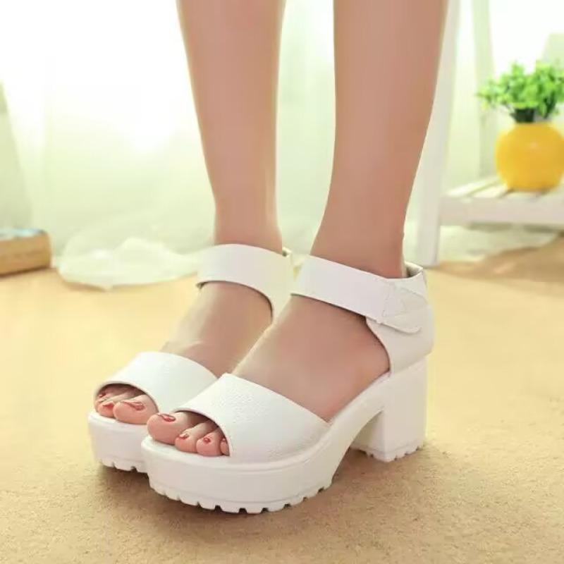 Frühling und Sommer große Größe Klettverschluss High Heel Sandalen Damen neue dicke Ferse Einwort dicke Sohle Mode Fischmaul Sandalen Damen