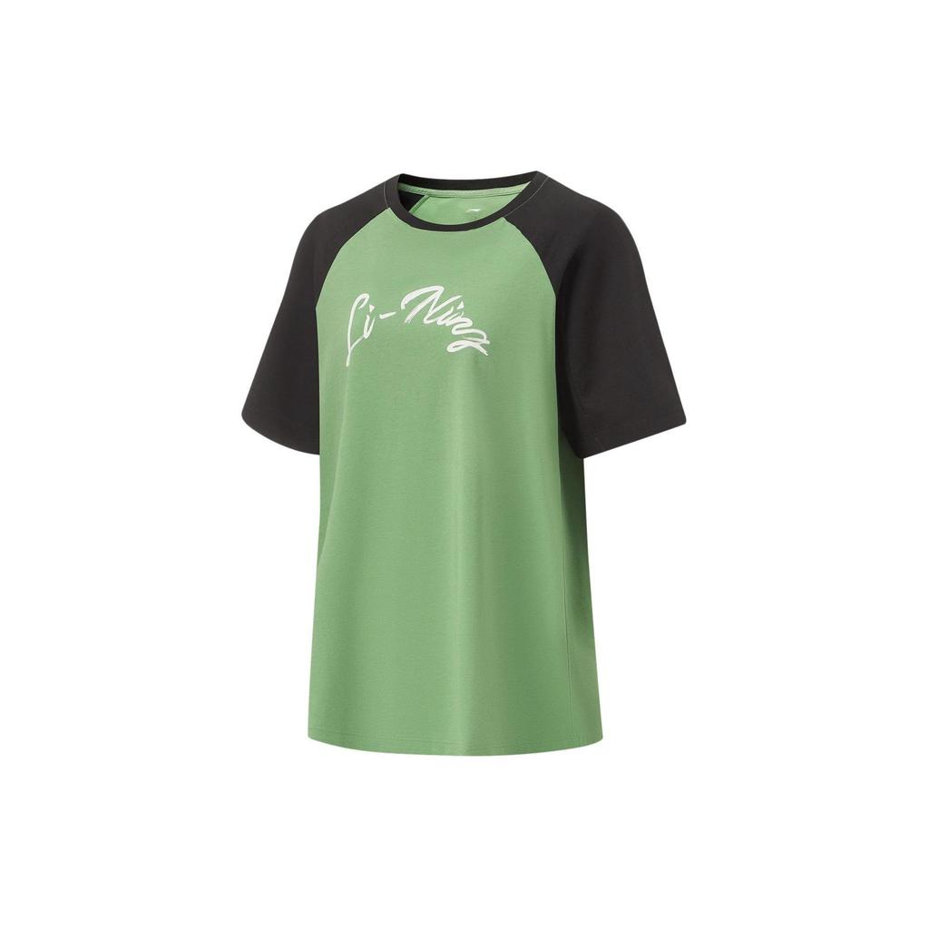 Li Ning Fitness Serie Color Block Schriftzug Rundhals Locker Kurzarm Raglan T-Shirt Damen T-Shirt Steingrün Schwarz ATSU462-3