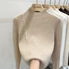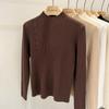 Ladies Autumn Winter Long Sleeve High Collar Slim Fit Basic Button Solid Color Pullover Knitted T Shirt Top for Layering