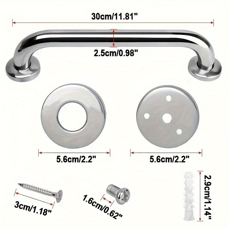 1/2 Piece Bathroom Handrail, Safe and Accessible, Disabled and Elderly, Non Slip Toilet Handrail, Stainless Steel, Sturdy