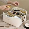 1pc Travel Makeup Bag - 3-Layer PU Cosmetic Organizer,Beige/Gold for Brushes & Skincare, Holiday Gift for Christmas/Thanksgiving