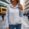 2025 Damen Colorblock Polokragen Sweatshirt Lässiger Minimalistischer Stil Langarm Pullover Heißer Verkauf für Europa Amerika