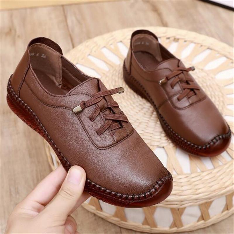 Mode Damen Echte Lederschuhe Frühling Damen Lässige Keilschuhe Schwarz Mama Las Bequem Klassisch Freizeit Loafer Schuh Ballerina Shdieoes