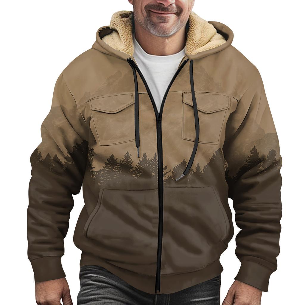 Herren Winter Reißverschluss Kapuzen Fleece Sweatshirt mit aufgesetzter Tasche Freizeitjacke