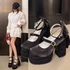 Mode Lolita Schuhe Süße Mädchen Schleife Samt Plateauabsätze Knöchelriemen Pumps Mary Jane Schuhe Bankett Party Kleiderschuhe für Damen Pumps