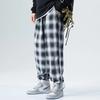Herren Schwarz-Weiß Karierte Hose Locker Geschnitten Übergroß Weitbeinige Hose Fließend Lässig Kordelzug Bündchenhose Herrenbekleidung