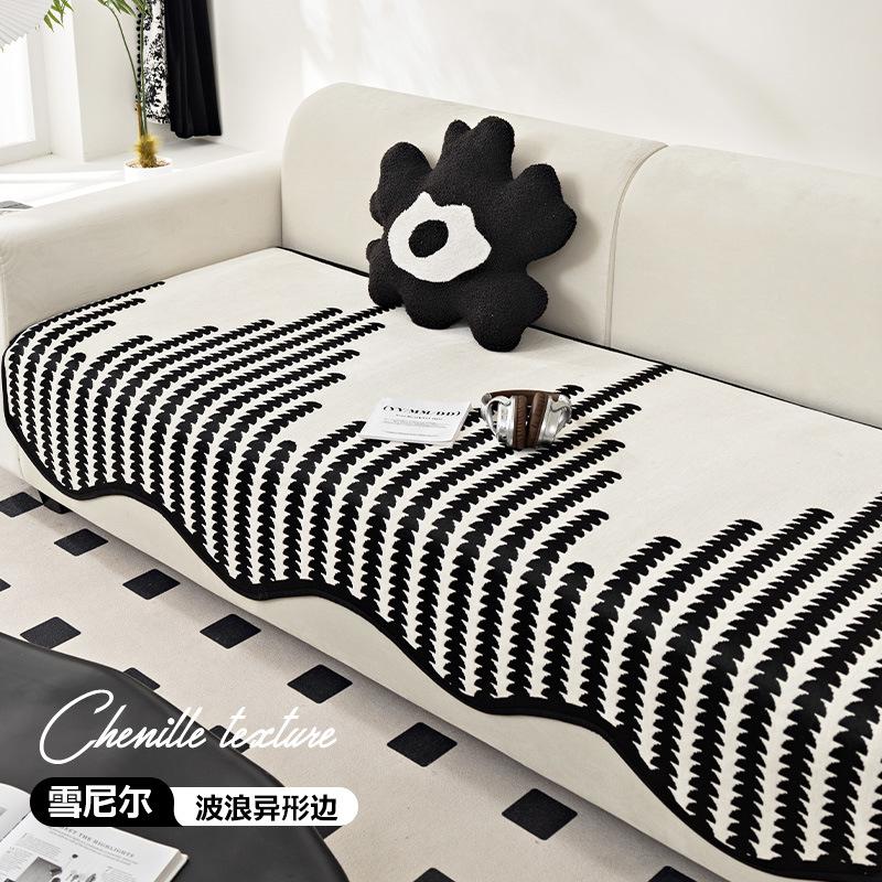 Special-Shaped Chenille Sofa Cover Pad New Light Luxury One-Piece Straight Non-Slip Leather Sofa Special Cover Seat Cushion