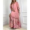 Sieben Zehntel Damen Patchwork Spitze Hemdärmel Kleid Lang