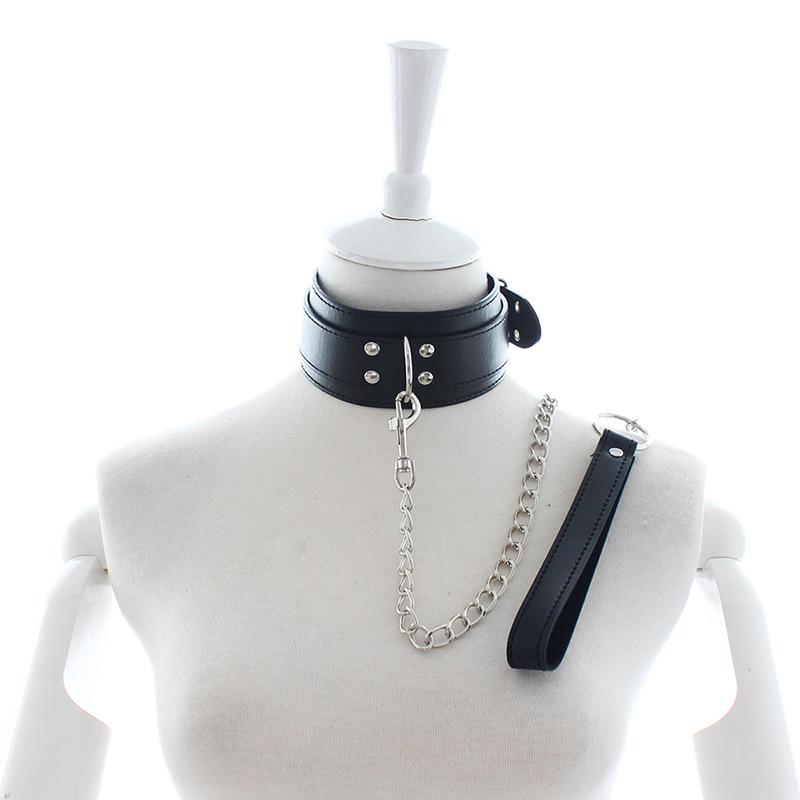 Schwarzes Leder BDSM Doppelreihen-Dornschließe Halsband mit Leine