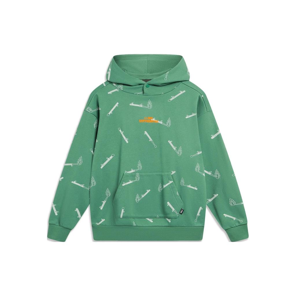 Li-Ning Phil Hackett Collaboration Pattern Printed Loose Fit Pullover Hoodie Unisex hoodies Deep-Palace-Green AWDT955-2