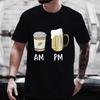 Kaffee AM Bier PM Grafik T-Shirt für Herren Sommer Kurzarm T-Shirts Bierliebhaber Trinkparty Übergroße Y2k Kleidung Streetwear