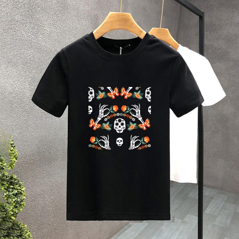Sommer Kreativität Blume Totenkopf-Print Y2k T-Shirt Für Mann Kurzärmelig Luxus Tees Für Herrenbekleidung Locker Reine Baumwolle Weiche Oberteile