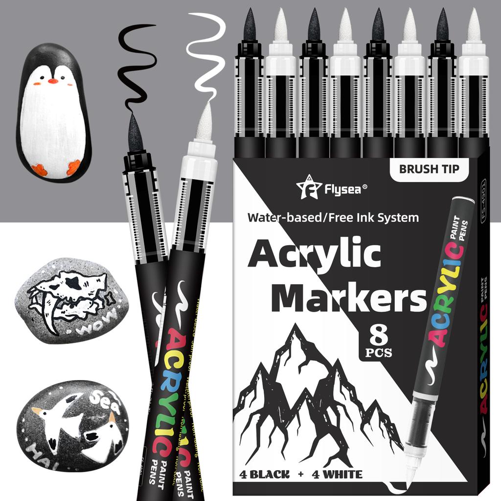 8 Stück Schwarz-Weiß Acrylfarben Marker Set, Große Tintenkapazität, Acrylmarker für Illustration, Skizzieren, Holz, Glas, Fab