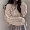 Herbst Winter Vintage Zopfmuster Crop-Pullover Damen Locker V-Ausschnitt Strickpullover Lässiger Stil Klassische Langarm-Strickware