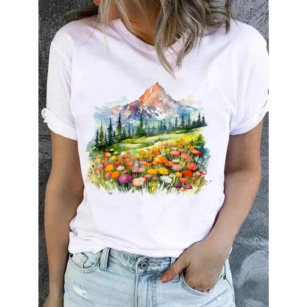 Liebliches Trend-Style-Tee für Damen Mode-Top Basic Kurzarm Print T-Shirt Kleidung Kleidung O-Ausschnitt Grafik-T-Shirts