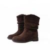 Mode Vintage Herbst Niedriger Absatz Damen Western Cowboy Stiefel Mode Damen Slipper Plissierte Kurze Stiefeletten