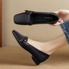 Retro Damen-Lederschuhe mit niedrigem Absatz, neue quadratische Zehenpartie, flacher Ausschnitt, Einzelne Schuhe sind leicht