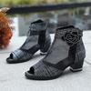 Mode 2025 Übergröße Mesh Damen Zehenfreie Stiefel Kristall Floral Reißverschluss hinten Knöchelsandalen Stiefel Stilvoll Retro Sommer Modern Klobige Absätze