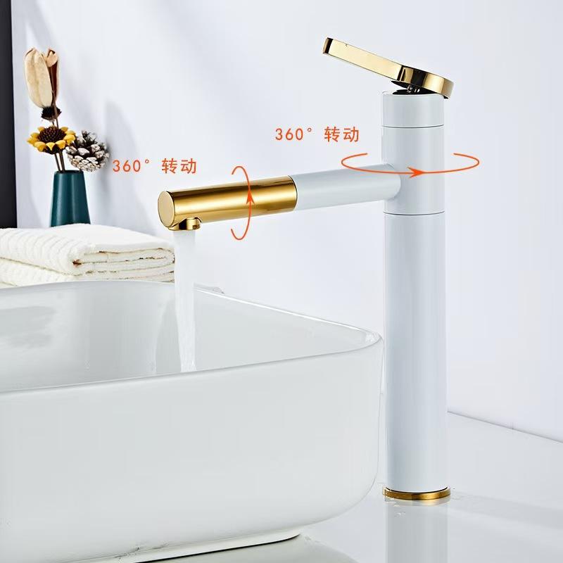 Bathroom Basin Faucets Black Sink Faucets Hot Cold Water Mixer Crane White Deck Mounted 360° Rotating Universal Water Taps Gray