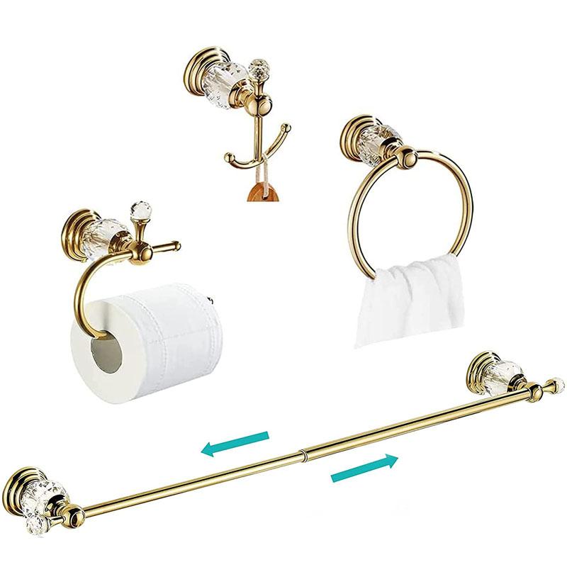 4-teilige Gold Badezimmerzubehör-Sets Messing&Kristall Ausziehbarer Handtuchhalter Wandmontiertes Papierregal Badezimmer-Hardware-Set